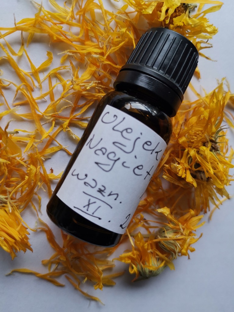 Produkt wykonany ręcznie w wyniku maceracji kwiatów nagietka w oleju słonecznikowym nierafinowanym (produkt ekologiczny).